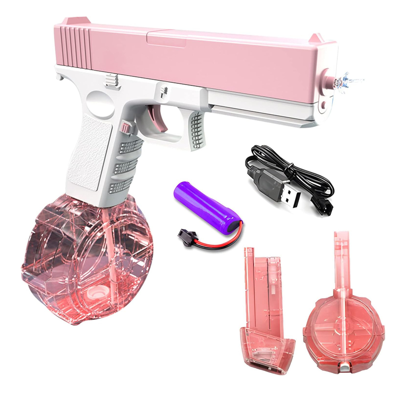 Vstupte do nového světa vodních bitev plných radosti a vzrušení s automatickou vodní pistolí Spray se zásobníky, která vás nadchne svými krásnými růžovo-bílými barvami. S touto pistolí se stanete nepřemožitelnými v každém vodním souboji. Její automatický mechanismus a silná stříkací síla vám zaručí bezchybný výkon a nekonečnou zábavu. A díky ergonomickému designu a jednoduchému ovládání si ji můžou užívat hráči všech věkových kategorií.