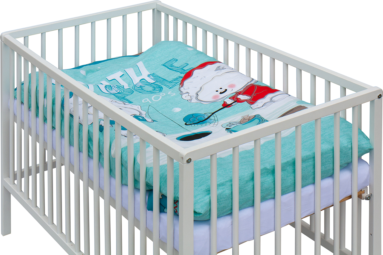 1. Dětská dřevěná postýlka 120x60 cm - bílá, masiv buk, 3 vyndavací příčky, 3 polohy roštu