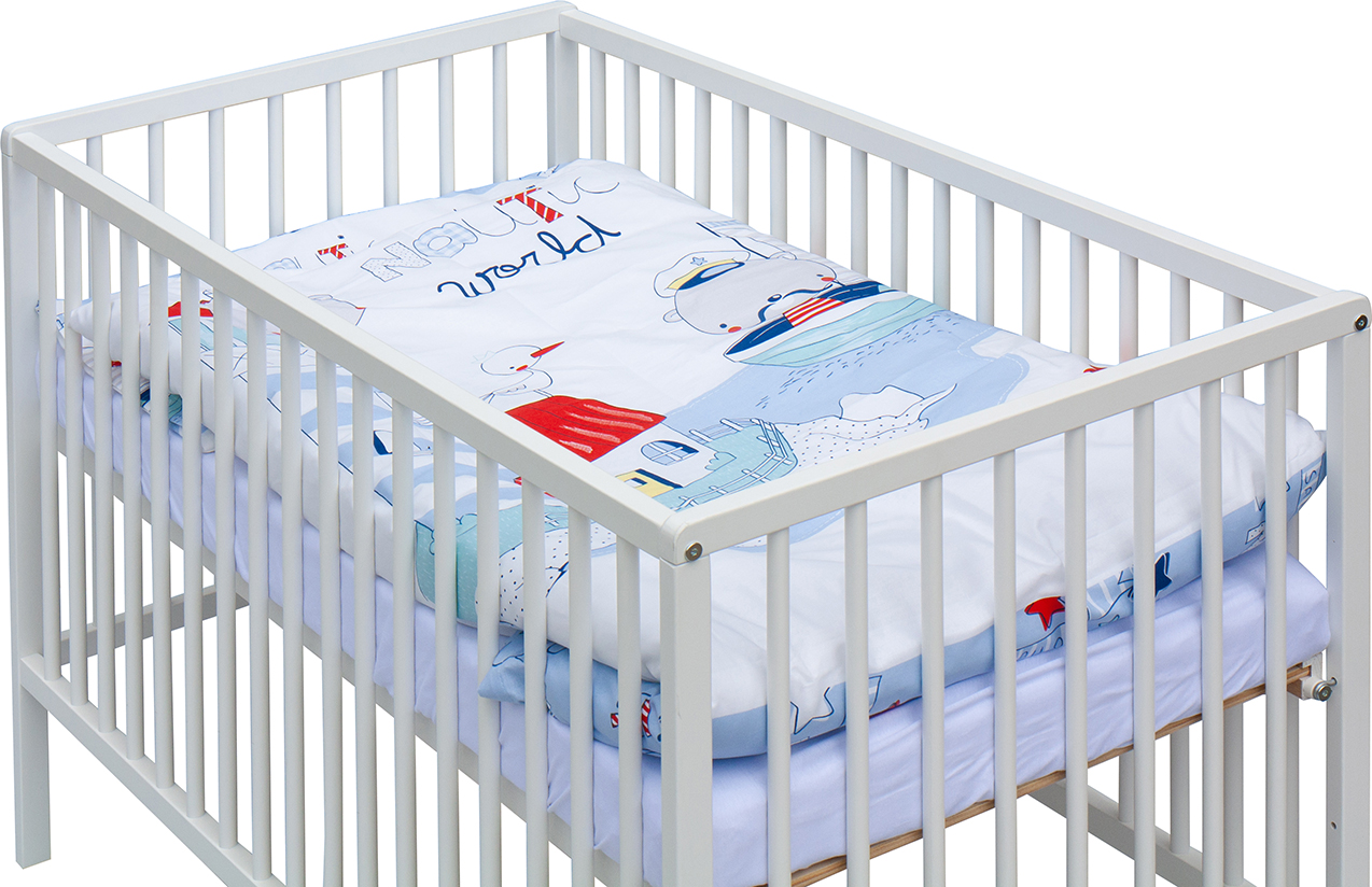 1. Dětská dřevěná postýlka 120x60 cm - bílá, masiv buk, 3 vyndavací příčky, 3 polohy roštu