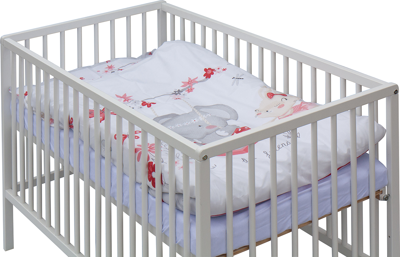 1. Dětská dřevěná postýlka 120x60 cm - bílá, masiv buk, 3 vyndavací příčky, 3 polohy roštu