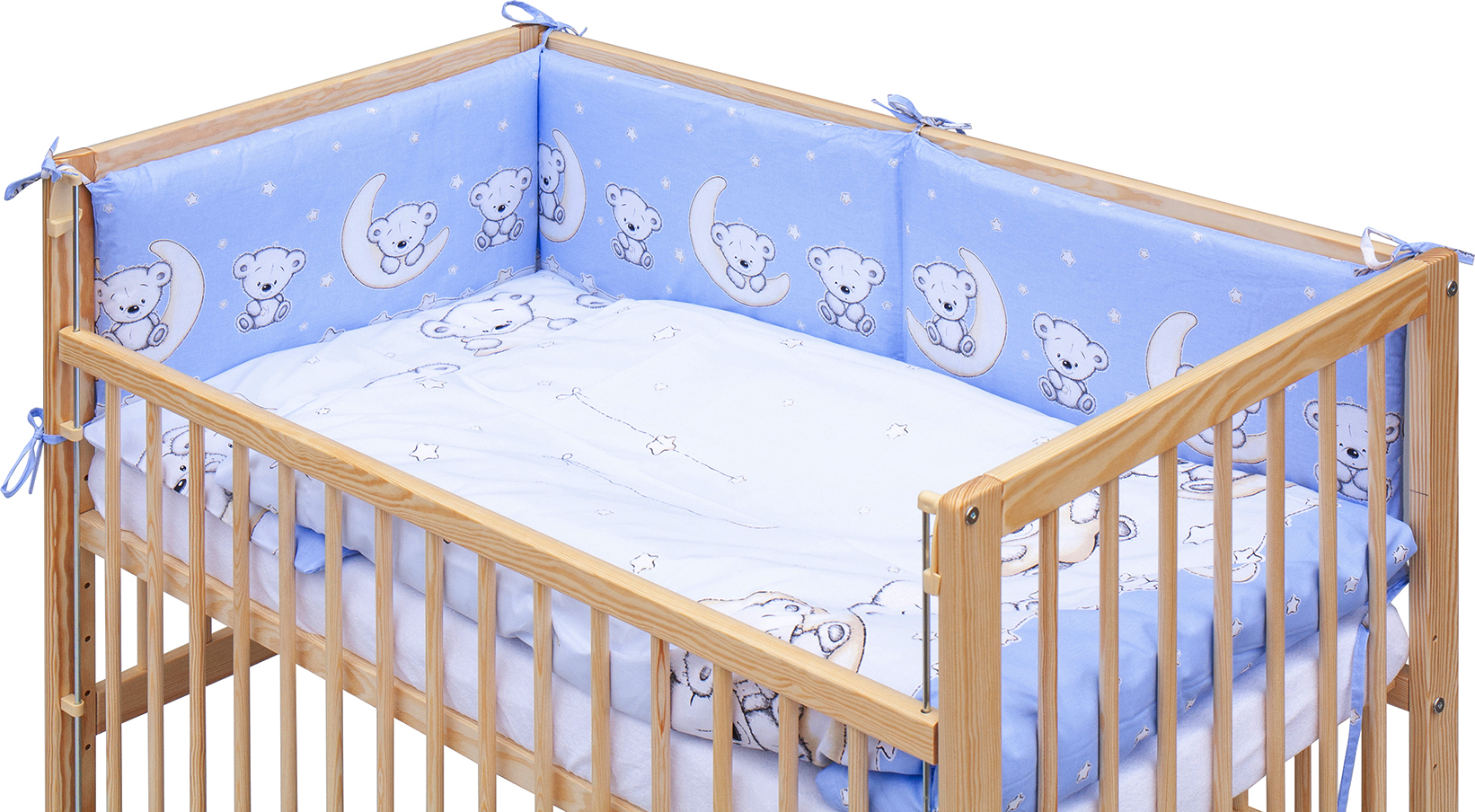 Dětská postýlka se stahovací bočnicí - přírodní ECO - 120x60 cm s kompletní výbavou Toro Barva soupravy: Toro modrá