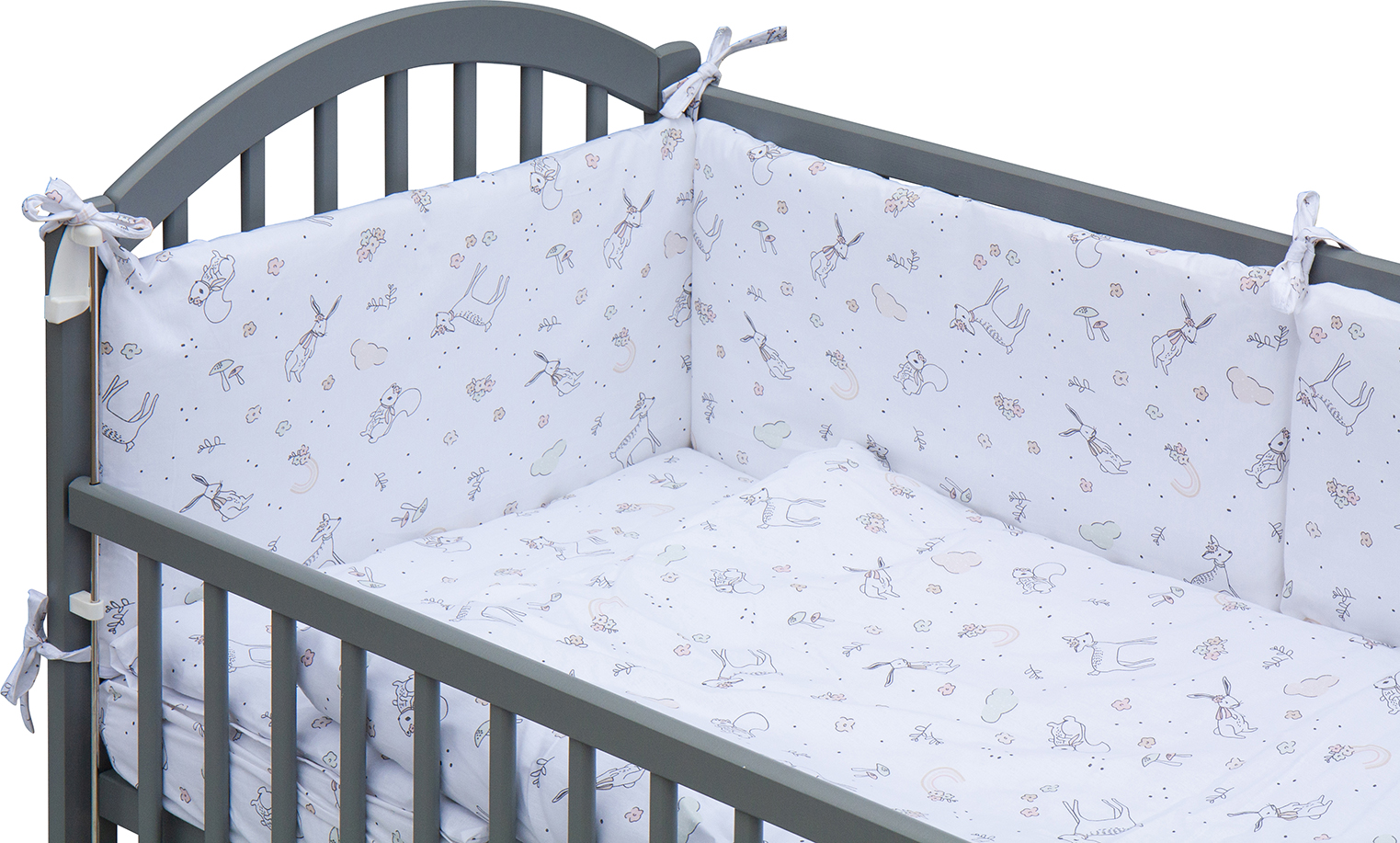 Součástí balení je kompletní výbava – kvalitní matrace, roztomilá sada povlečení, mantinel a prostěradlo, takže máte vše potřebné hned po rozbalení.
