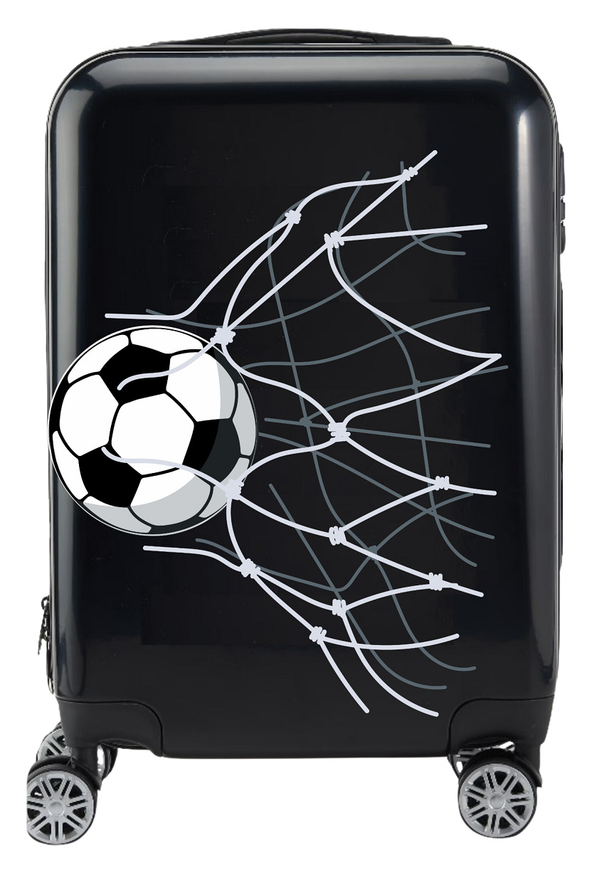 Dětský cestovní kufr s fotbalovým motivem gólu rozrážející síť branky, je perfektním dárkem pro malé sportovce a nadšence do fotbalu.