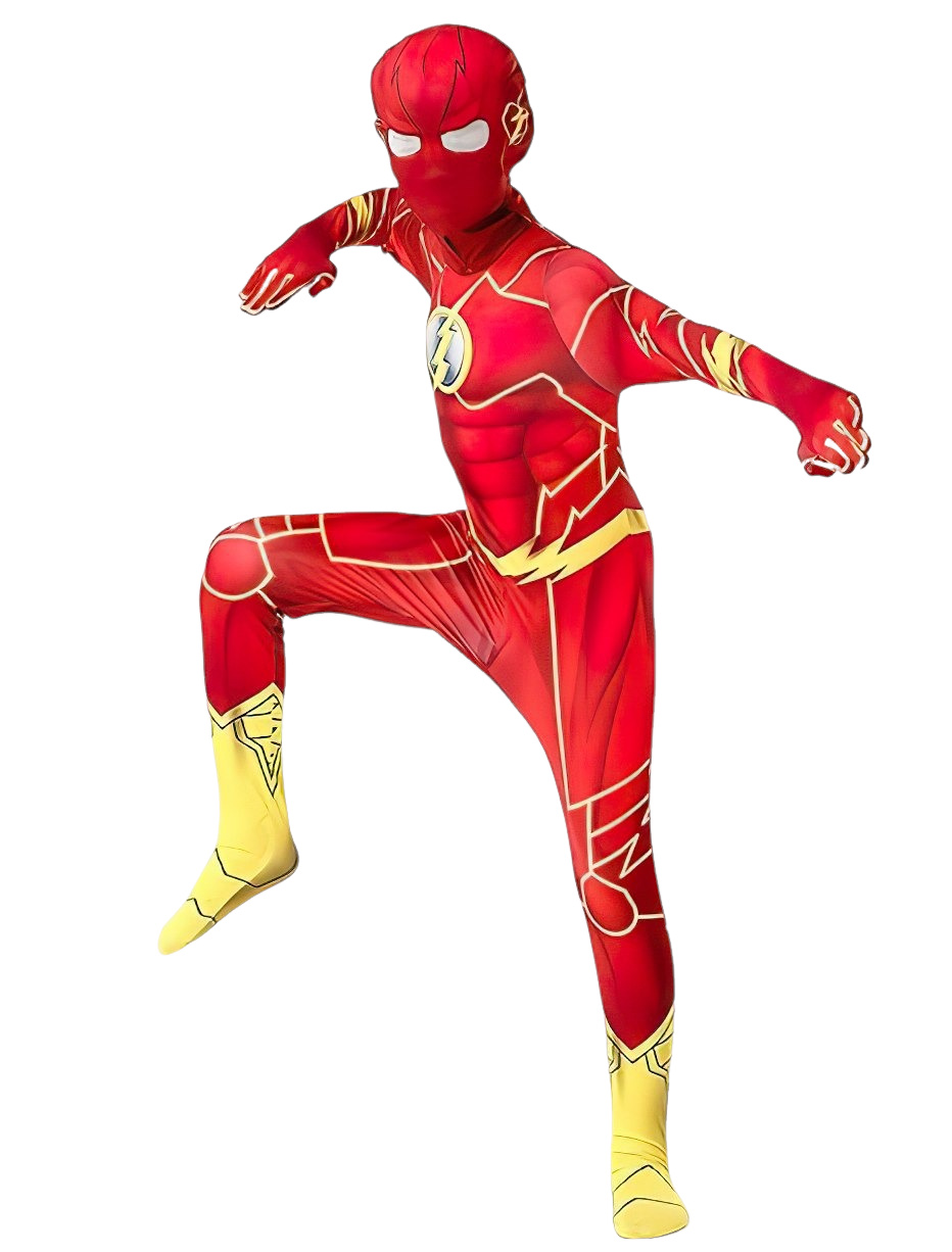 Tento červený oblek, inspirovaný jedním z nejrychlejších superhrdinů z komiksového světa, přenese vašeho malého hrdinu přímo do týmu Justice League. Kostým se vyznačuje výrazným červeným designem s bleskovými detaily a logem Flash na hrudi. Vaše dítě se tak bude cítit jako Barry Allen – muž, který dokáže překonávat čas a porazit zločin dřív, než kdokoli mrkne.