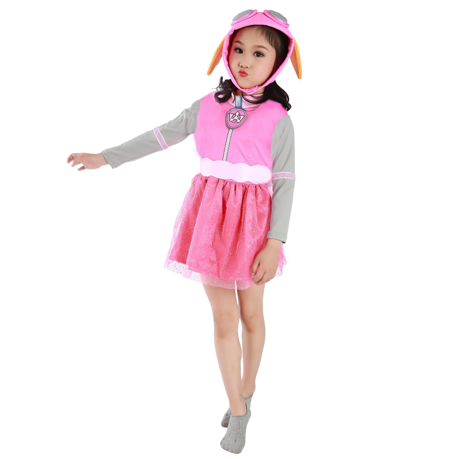 Kostým je laděný do ikonických růžových a šedých tónů, které přesně odpovídají oblečení fenky Skye, a umožní dětem naplno se vžít do role své oblíbené postavy.