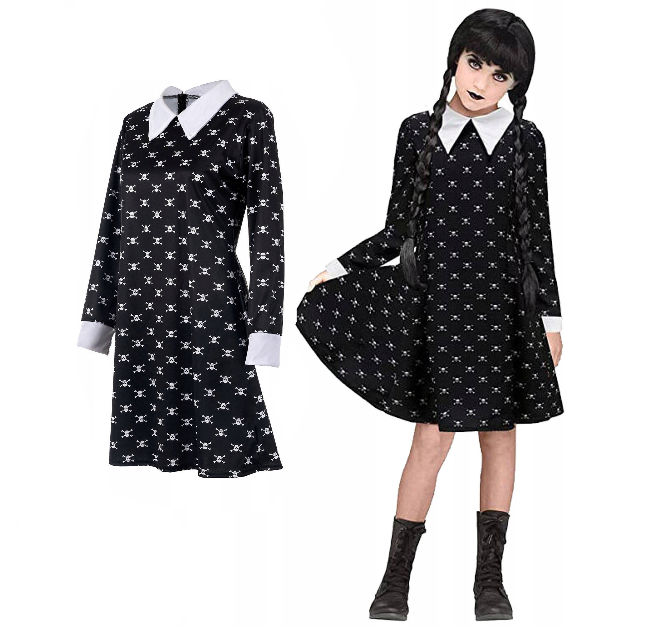 Tento kostým je skvělou volbou pro dětské karnevaly, Halloween, nebo jakoukoli jinou událost. Kostým je jednoduchý, lehký, v klasickém černo-bílém provedení s límečkem. Na šatech jsou bílé dekorační potisky lebek, pro ještě strašidelnější vzhled pohádkové postavičky. Díky kvalitnímu zpracování a pohodlným materiálům bude vaše dítě v tomto kostýmu vypadat a cítit se skvěle. Za originální proměnu do jedné z nejznámějších postav z kultovní Adamsovy rodiny - Wednesday, jistě dítě získá spoustu chvály.