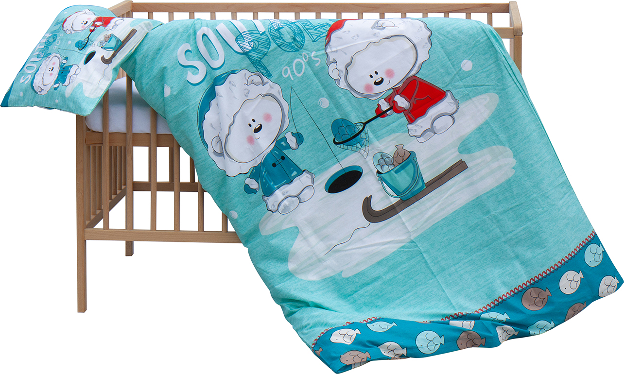 Levná postýlka s vyndavacími příčkami - přírodní ECO - 120x60 cm s výbavou Velcí kamarádi Barva soupravy: Ledy
