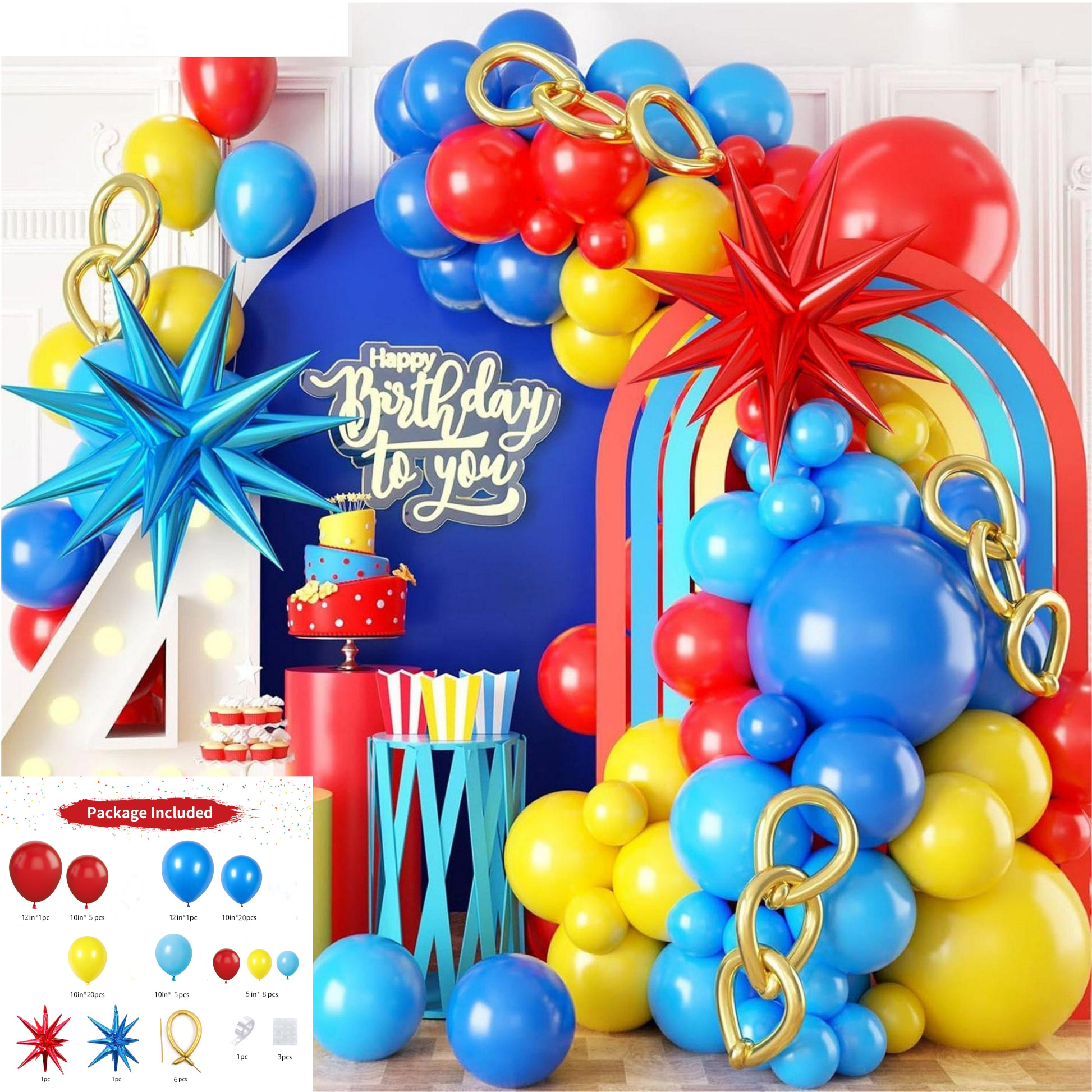 Velká sada balónků na girlandu Chain Star je perfektní volbou pro vytvoření nezapomenutelné atmosféry na oslavě. Obsahuje celkem 70 ks balónků v jasných cirkusových barvách – červená, modrá a žlutá – a další doplňky, které povýší dekoraci na profesionální úroveň. V sadě najdete balónky v různých velikostech (od 5" až po 12") a speciální prvky, jako jsou hvězdy ve 3D provedení a zlaté řetězové balónky, které dodávají nádech elegance a originality.